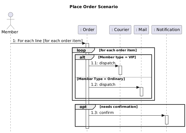 • En este caso:Miembro -> Pedido : 1: Para cada línea...