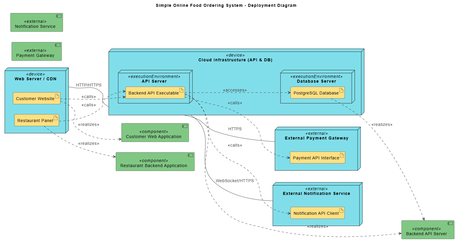 título Sistema simple de pedido de comida en línea – Diagrama de despliegue